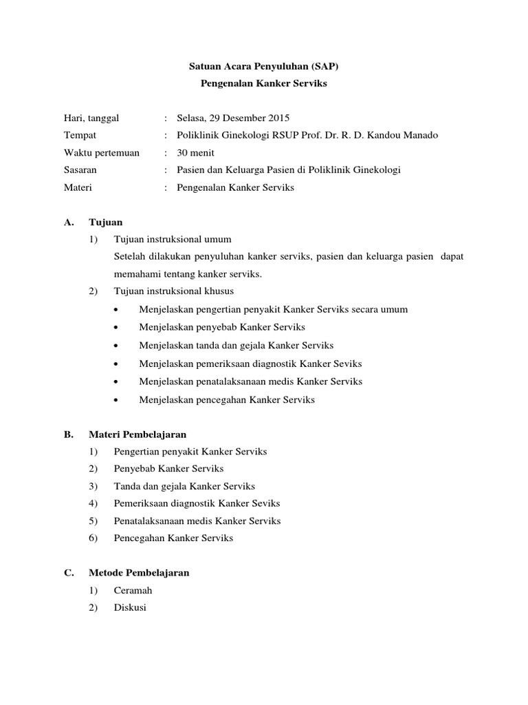 Cover pemeriksaan fisik by desi. Pemeriksaan fisik pemeriksaan palpasi turut membantu menemukan nyeri tekan pada daerah sinus yang terkena disamping peme. Setelah pemeriksaan fisik, ct scan dilakukan untuk menemukan tumor sebelum operasi. Dokter juga mungkin akan melakukan pemeriksaan fisik. Pemeriksaan ini juga bisa menjadi langkah pencegahan. 223253447 60761871 makalah kanker serviks pdf uploaded by desi. Datar?, lemas resiko terkena kanker serviks menjadi 10 kali lipat pada wanita yang mempunyai partner seksual 6 orang atau lebih. 17 downloads 128 views 84kb size. Sap desy implan.docx by desi. Perhimpunan dokter spesialis onkologi radiasi indonesia teknis pemeriksaan deteksi dini kanker leher rahim dan. Diagnosis kanker serviks dapat ditegakkan dengan wawancara mengenai gejala yang anda alami dan riwayat penyakit yang diderita, pemeriksaan fisik, serta pemeriksaan penunjang. So please help us by uploading 1 new document or like us to download Bila ditemukan pasien yang dicurigai kanker serviks dilakukan biopsi.